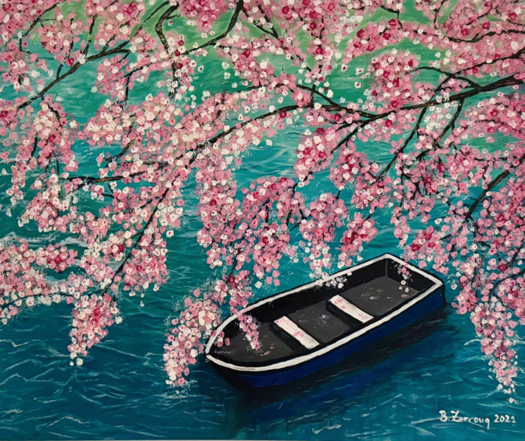 L’art occupe une place essentielle dans ma vie : la peinture est pour moi un espace de liberté et de recherche, un langage silencieux qui me permet de donner forme à mes émotions, à mes souvenirs et à mes paysages intérieurs. Elle est une manière d’exprimer ce qui ne peut se dire autrement, de relier mes racines culturelles marocaines à une quête artistique ouverte sur le monde.