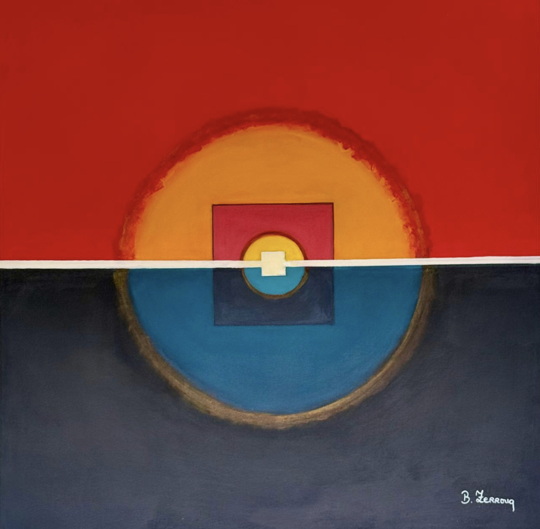 Harmonie explore la rencontre des forces, la coexistence des opposés et la paix qui naît lorsque tout s’accorde. Une exploration de l’équilibre entre couleurs, formes et énergies. Cette série comporte quatre grands (90*90) et quatre petits formats (60*60). Chaque toile est un espace où la géométrie rencontre la vibration intérieure.