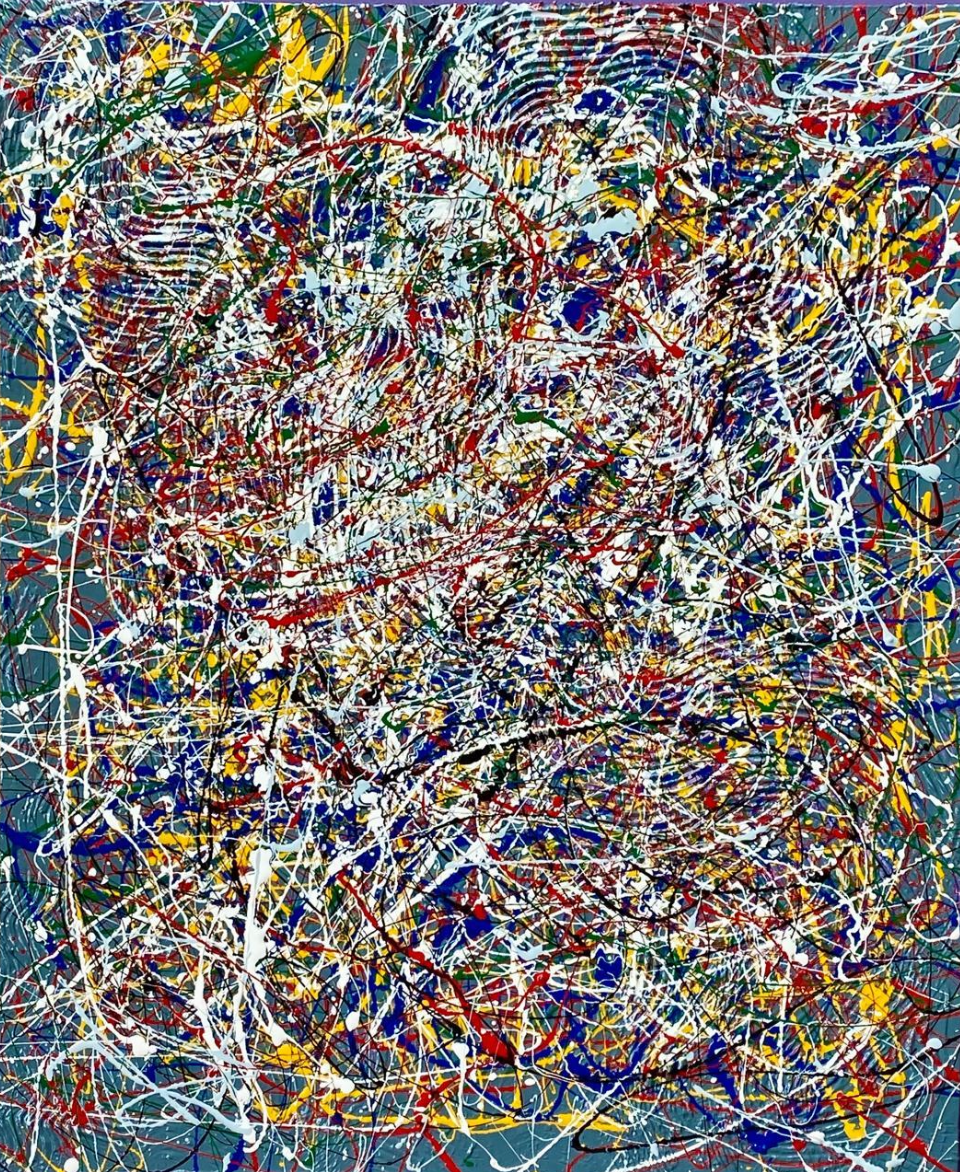 Qu’il s’agisse des rythmes liquides hérités de l’action painting, inspirées de Pollock, des calligraphies lumineuses, des textures métalliques ou des clins d’œil surréalistes nourries par l’univers de Miro ou de Magritte, chaque œuvre naît d’un désir d’exploration. Ces variations témoignent d’une recherche constante : comment transformer la matière en vibration ? Le signe en symbole ? Le hasard en poésie visuelle ?